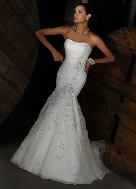 Mermaid Wedding Dress featuring a soft scoop neckline with cross-cross pleats and crystal floral lace details throughout the dress.