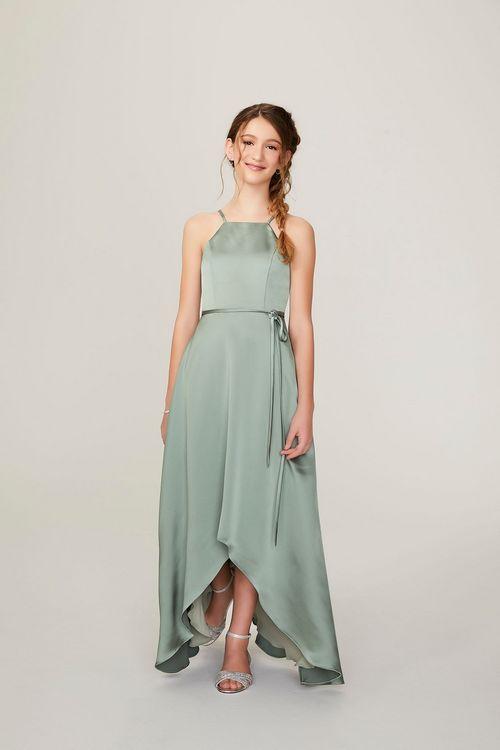 Jr. Bridesmiad Dress|Halter|Square|Satin|Silk